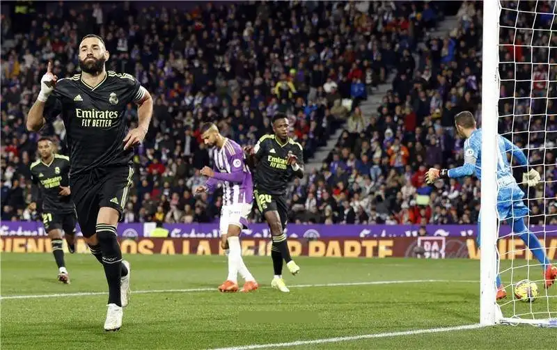 Benzema scored the first goal in the 83rd minute from a penalty kick, before doubling the score in the 89th minute, noting that the match witnessed the expulsion of Valladolid player Sergio Leon in the 82nd minute.