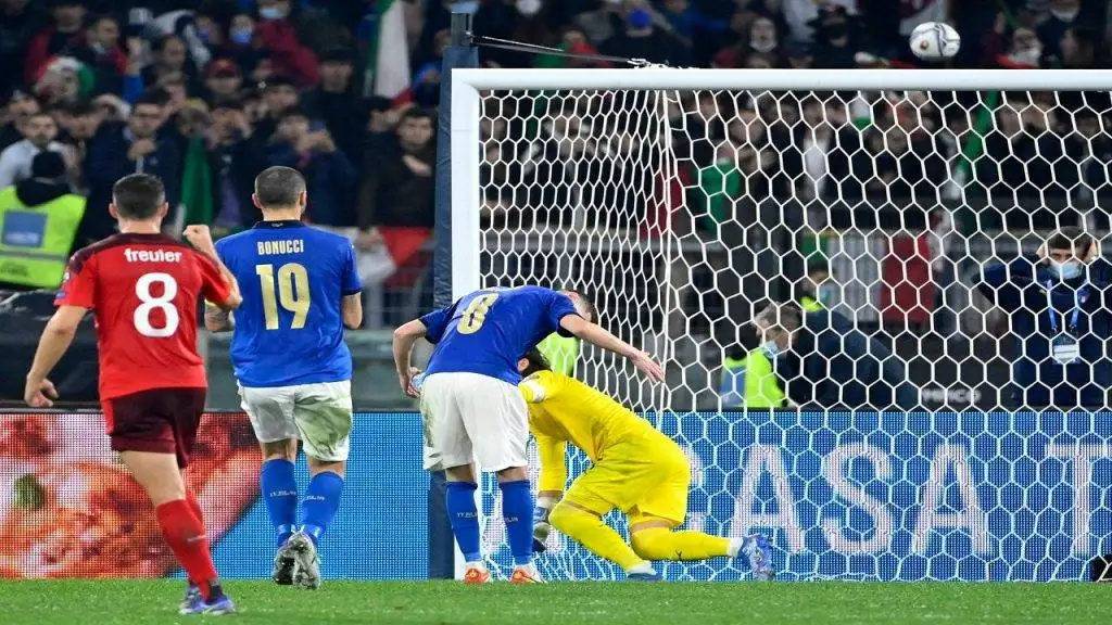 Giovanni Di Lorenzo headed Italy level after Silvan Widmer’s amazing opener.